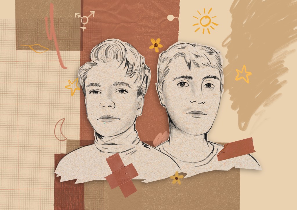 ROSANA: It’s funny recently, I think you said it Ivor, where sometimes you feel like, maybe another gay person looks at us and they think, Oh, they’re both gay, but they don’t know. Like, they think we’re like a lesbian and a gay man in a relationship or I don’t know, like, you know, that is us just really imagining what other people think. Yeah, I guess. I don’t know, I often sort of thinking about like, gender identity. In general, I suppose it’s always this interplay in relation between how you feel, how you look how you think you look, and how other people see you, which is often something you’re only imagining, anyway, sometimes you get told whether you want to or not, but and so when you feel a slight mismatch there it you know, in some ways, that’s sometimes in the extreme, that’s a really, really, really horrible and uncomfortable situation. And sometimes it’s just a sort of slight jolt, and it can feel really different at different times. But I think, I suppose it’s, we, I suppose we talk about it a bit, because it sort of like shows in a way that like, lack of space and imagination that we still have within the categories that are there for identifying people. And obviously, you know, we know that these categories of like heterosexual and homosexual, trans and cis have been invented mainly by cis straight white men, I think, you know, back in the day, and then we’re all trying to, like, align ourselves in amongst them. And, and it’s sort of, yeah, it, then you find yourself in this space that, you know, that feels just like much more open and fluid. And obviously, now, within our queer communities, we have so many more words, you know, that we’ve sort of been coming up with, to describe, like, so many different ways of being and thinking about who you are, and your sexuality and your gender, but I think still kind of, there’s, yeah, I was gonna say, a lack of imagination. But I think that’s a harsh way of saying something that’s actually maybe like a lack of knowledge and of seeing different kinds of people to be able to read with more nuance who we might be and, you know, obviously, in some ways being read as heterosexual is a privilege and like, you know, you are therefore safer in the world. But I think, and yeah, there’s this, I think something that can feel difficult is this idea that that’s the aim and that we would be so happy now we can finally be this normal thing. And we can get a card that says auntie and uncle on it, which is you know, that you know, that that happened, like, and that someone in my family actually trying to be really accepting of Ivor’s transition, and like, oh, we see you in this way. But it’s like, oh, no, we’re not. We’re not that. And yeah, I guess. I’m trying to like put these things into words, but I just know for me there’s this like, physical sort of feeling of like, no, I’m a rebel. I don’t know, like that’s a part of my identity is that we’ve fought for for so long to sort of exist in a non normative way and, and really build ourselves up around that. But it even though it’s actually gaining some privilege, it can feel like a loss of something as well. Yeah, I don’t know. What do you think, Ivor?